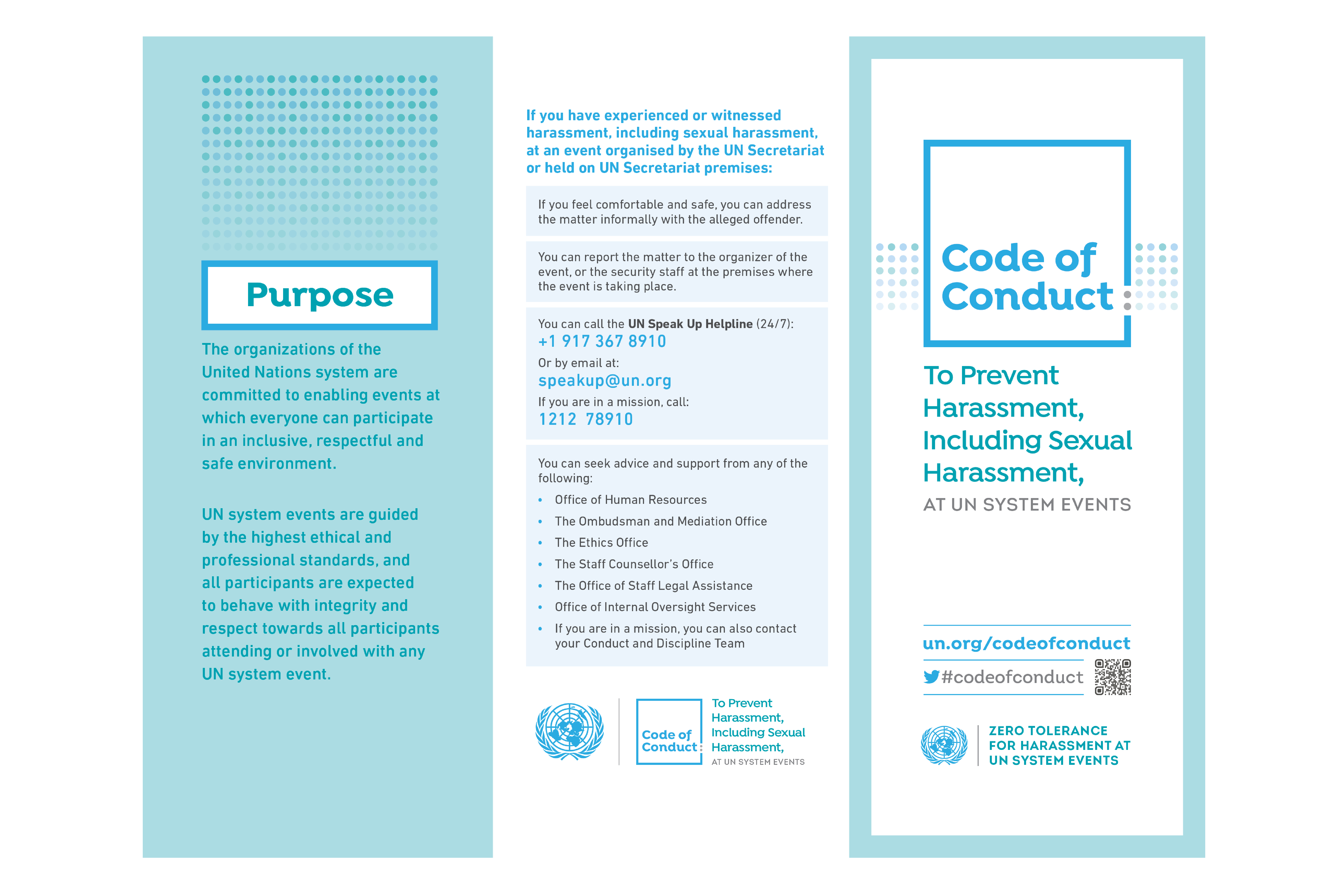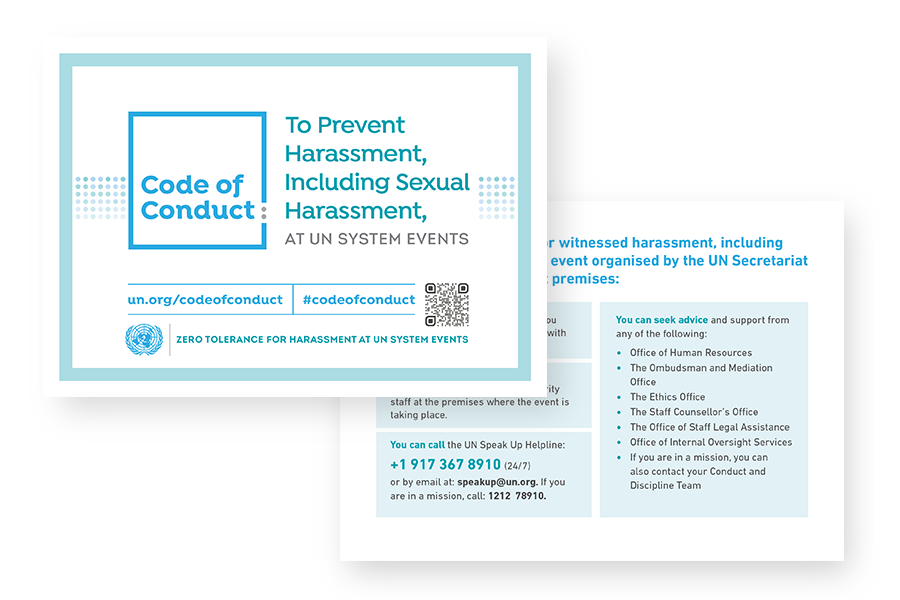 Following materials are available for UN system entities and organizers of events on UN system premises to adapt and distribute at events: